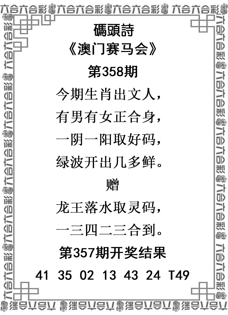 358期澳彩码头诗